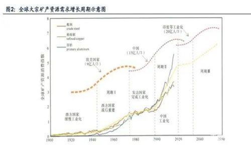 海外國家的數(shù)據(jù)表明,當人均GDP超過2萬-2.2萬美元,社會財富積累步入較高水平,大宗礦產(chǎn)資源消費均處于零增長或負增長階段,以高新技術(shù)為特色的低能耗、低物耗的第三產(chǎn)業(yè)成為GDP的主要貢獻者。